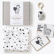 The sets are ready to be gifted in a lovely Wee Gallery box. This set features an Organic Penguin Teether, Baby Animals Collection Art Cards and a Seedling Organic Muslin Swaddle.